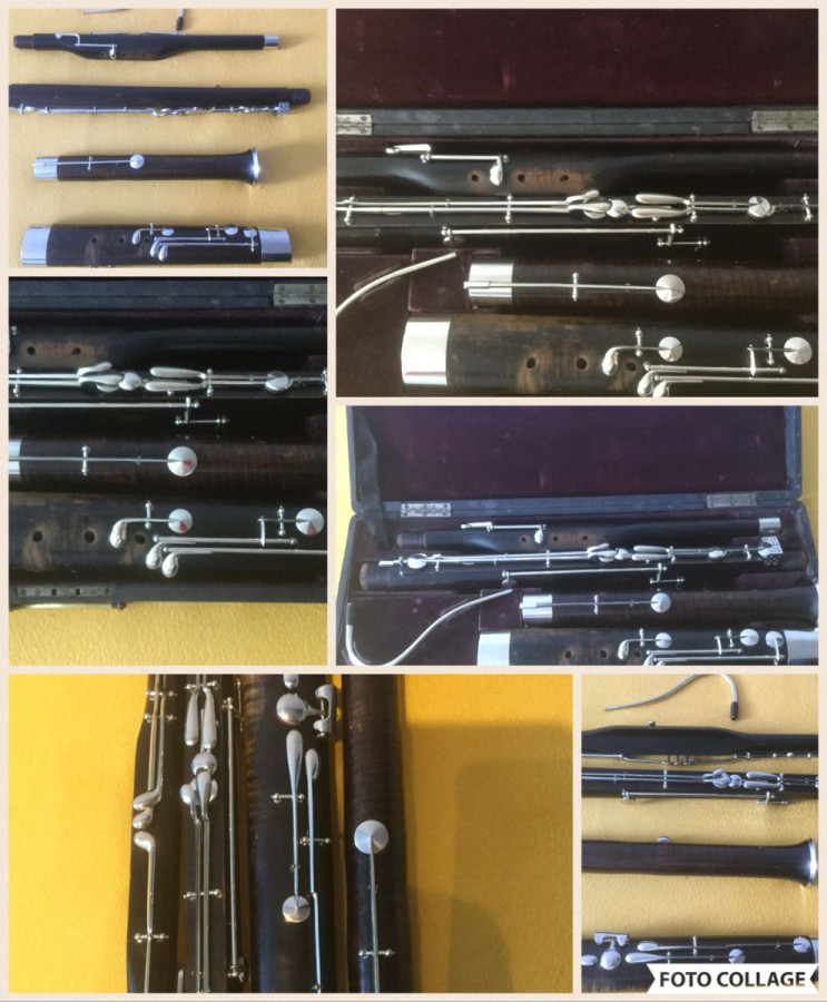 Length of bassoon: 132 cm. This is a classic Viennese bassoon with a funnel and square Eb key, bassoon with 16 silver keys and sockets.