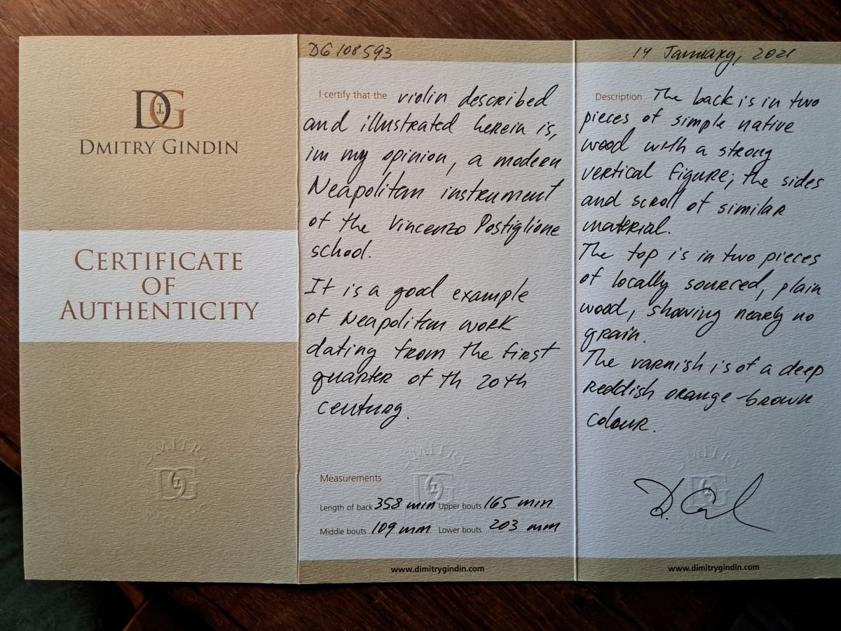 violin by school of Vincenzo POSTIGLIONE, Naples ca.1910
