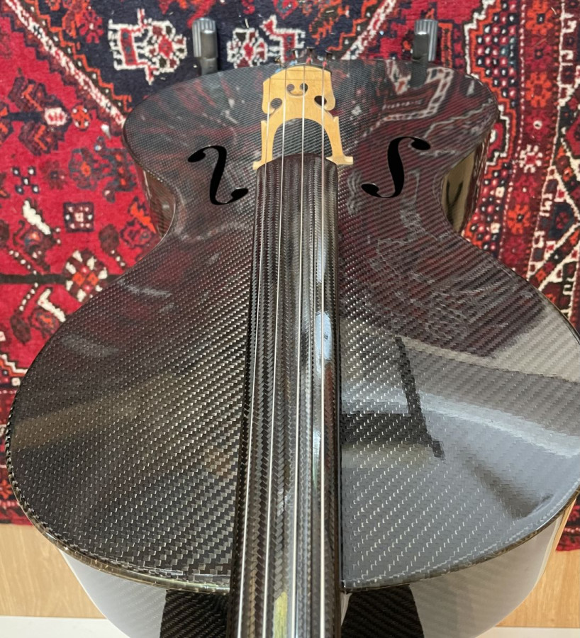 Carbon fibre cello #714. The perfect cello for outdoor gigs, teaching and whilst living in the heat of Middle East! Sleek, lightweight and indestructible. Great sound.