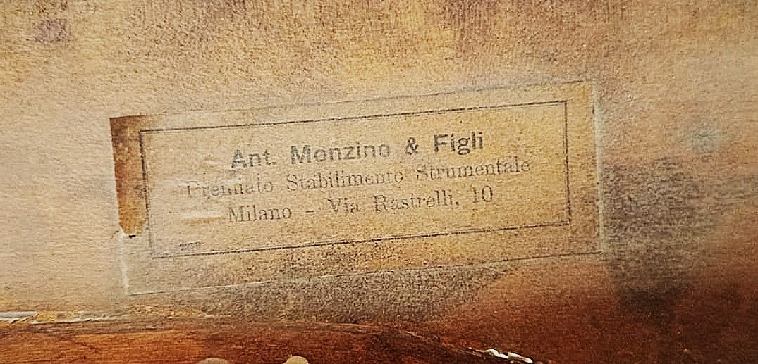 ANTONIO MONZINO MILANO Italian double bass original label, 3/4 106.5