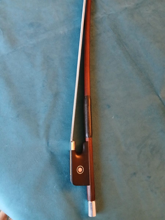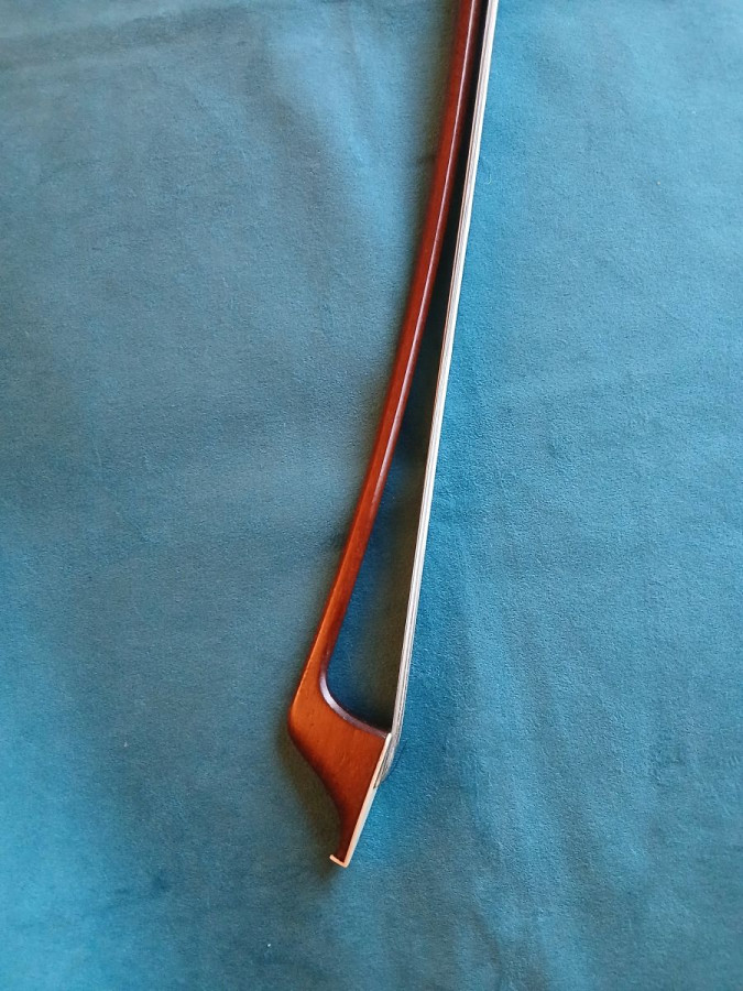 Très bel archet ,long et fin.130 grammes environ, 57 cm longueur de mèche et 72 cm longueur totale.
