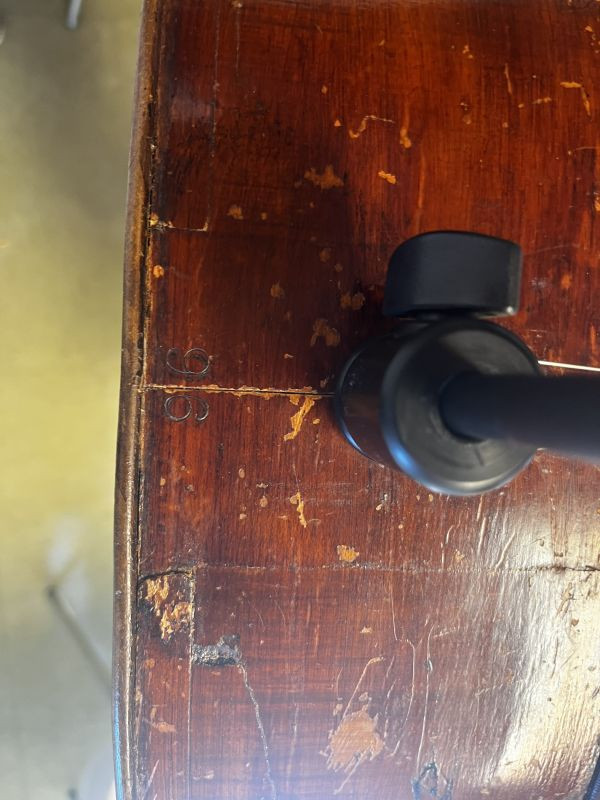 Cello ecole Markneukirchen 1750, has a number 96 near the endpin, etiquette M. Goffriller.