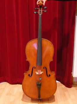 Violoncello with vignette „ Jos. Müller (1850-1936), Schönbach“, price around 4000 EUR, property of Janacek Philharmonic Orchestra