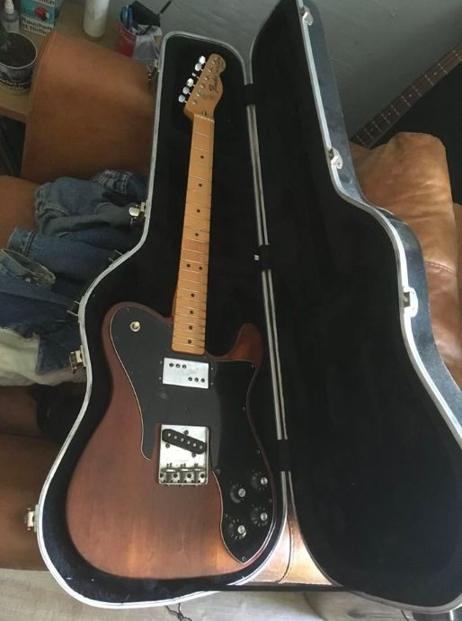 Fender 72 Telecaster Custom, worn Walnut (brown) finish, buckle rash on the back, black strap & Mexican neck.