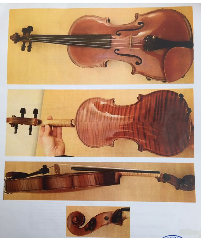 Vioara furata Alfredo Contino,cu eticheta originala cu semnatura cu autograf are,de asemenea,o stampila in centrul atentiei la capatul manerului de pe spatele viorii . Este construit in Napoli in 1925.Vopsea maro portocaliu pe fundal galben .Acesta este plasat intr-un nou caz in forma de marca Gewa,acoperite cu textile negre si in intregime captusite cu catifea burgundy.Nu erau arcuri,tampoane de umar inauntru in momentul furtului .Pe vioara siruri de caractere de brand Peter Infeld.