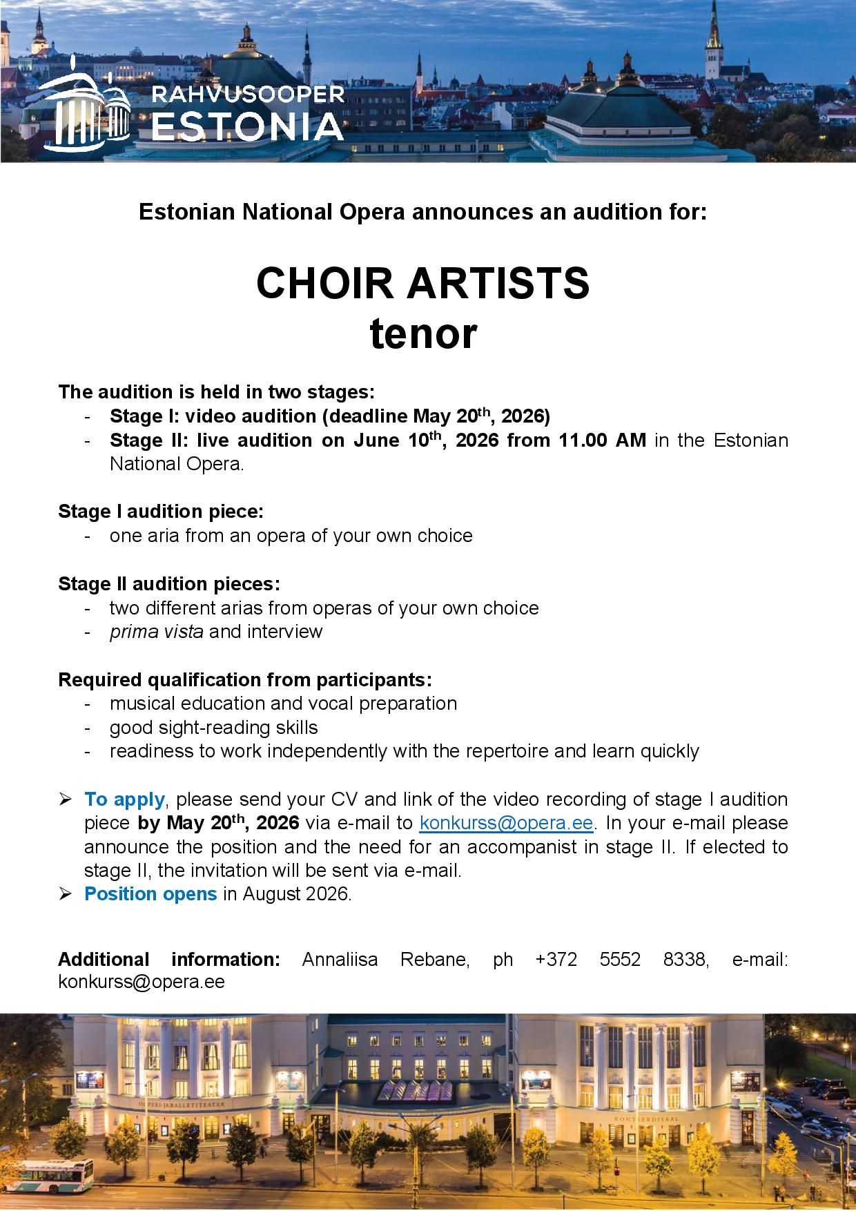 Call for choir artists (tenor)