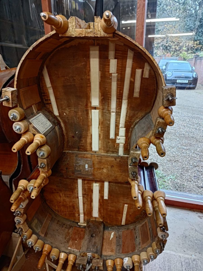 Double bass XIX century, probably French, it has an etiquette where is written that it’s a Paul Claudot, it was recently restored and upgraded for better playability, contact me if you wish to try it.