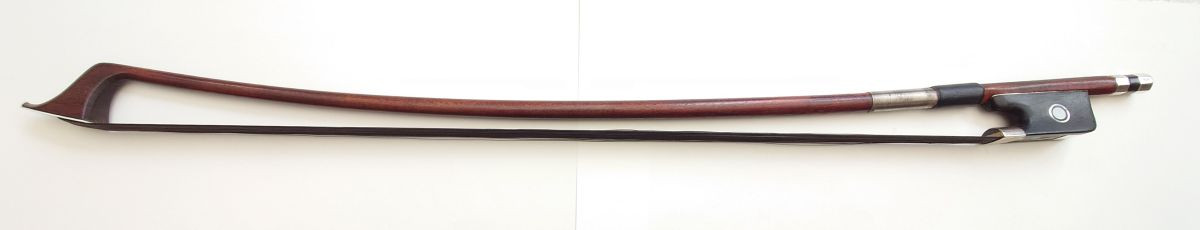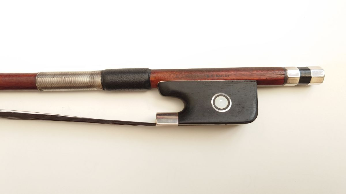 Silver mounted double bass bow by Gordon Bailey. Used professionally for many years and in good condition.