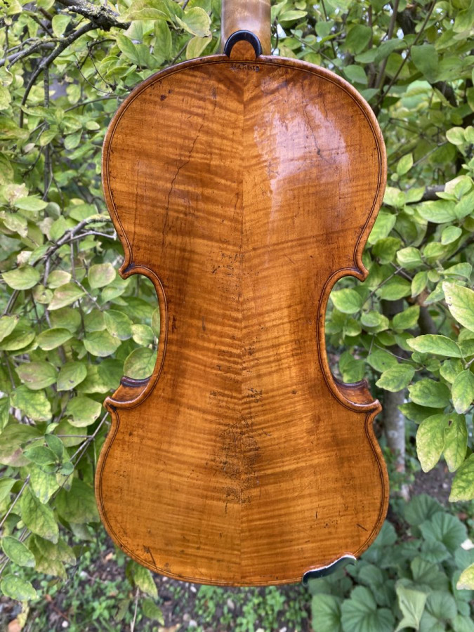 For sale a fine full-size English violin made by Charles Harris, senior circa 1780.Branded Harris below the button and signed three times internally by Charles Harris to the lower ribs, lower back and the upper part of the table.This fine violin is based on a Nicolo Amati full-size pattern with a back length of 35.1 cms.The measurements of this violin are,back length 35.1 cms,neck length 130 mm and the stop length is 195 mm.Constructed with a fine grain two piece front and a prominently flamed two piece back.This violin is in excellent playing condition producing a deep mellow tone with good volume which is even on all strings,a fine sounding instrument.Restored by John Topham.