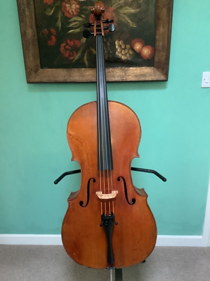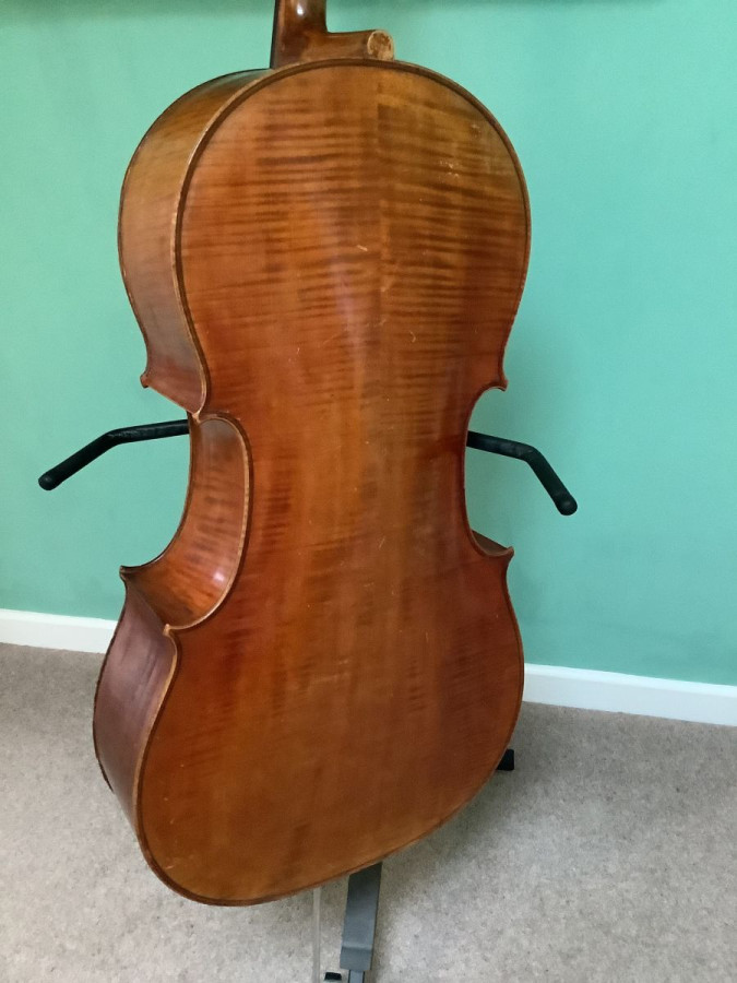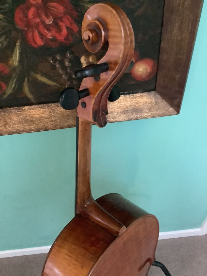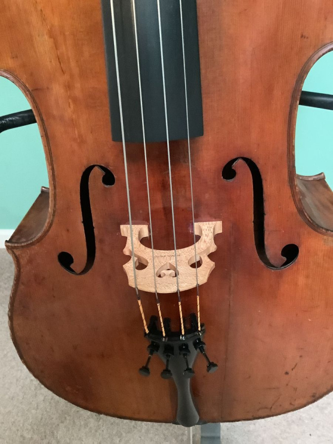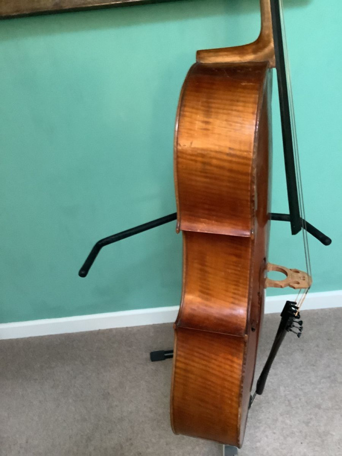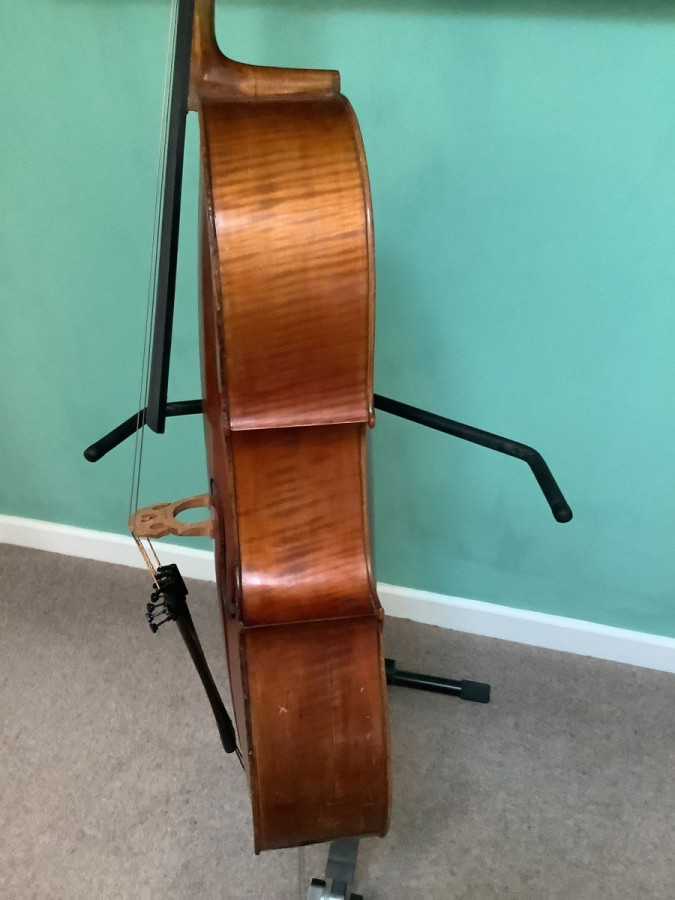 All internal crack repaired and cleated,heel repair,new bridge,and Larsen strings.New endpin,and Ebony throughout.This is a very rare instrument
