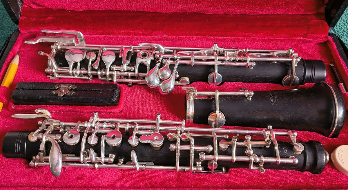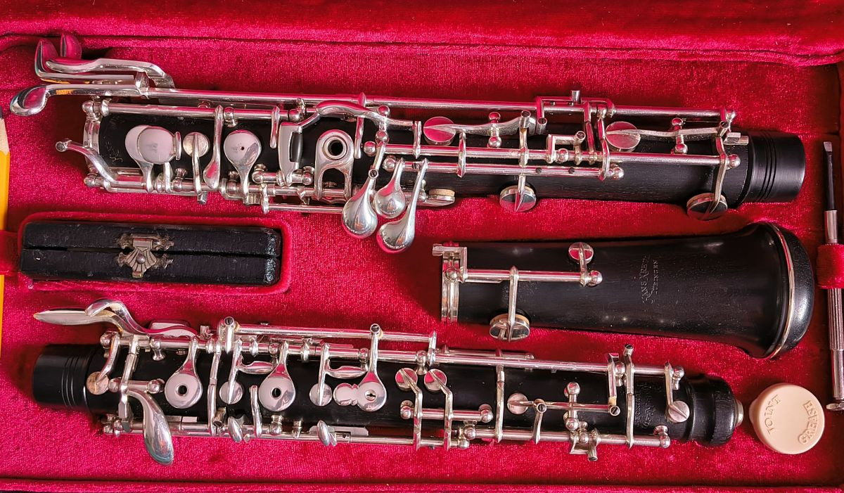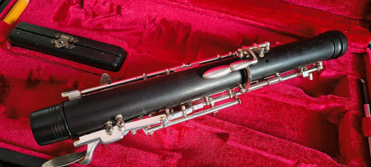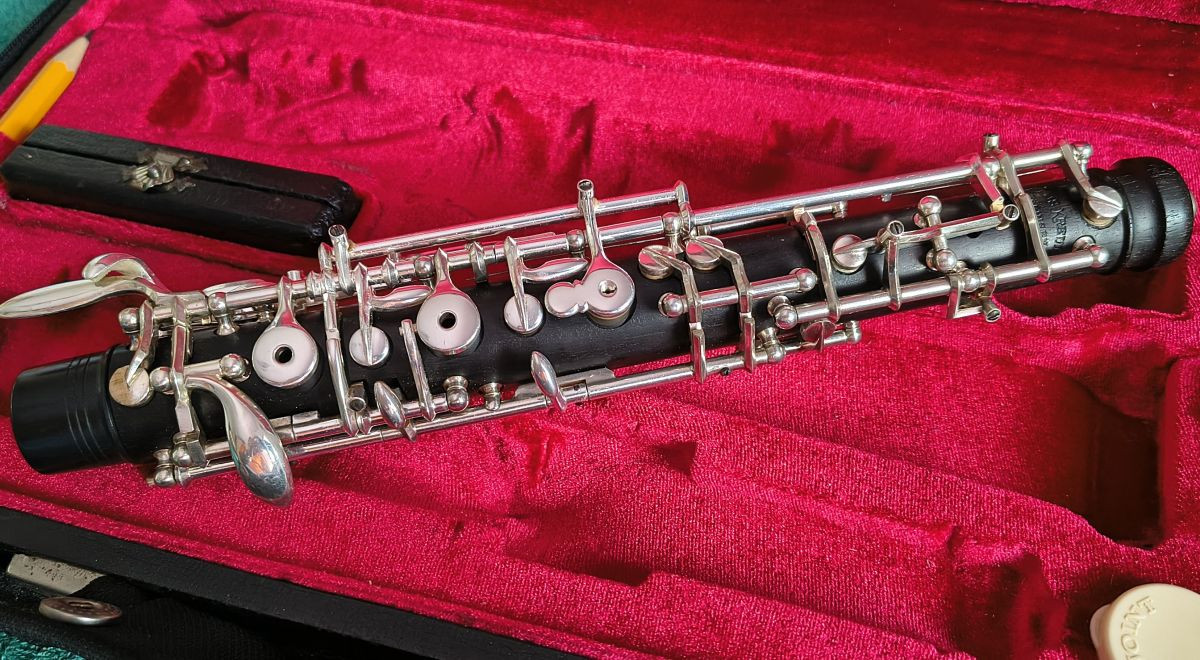 It comes in his original wooden case +3 oboe (hand made )reeds +case textil cover .