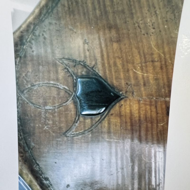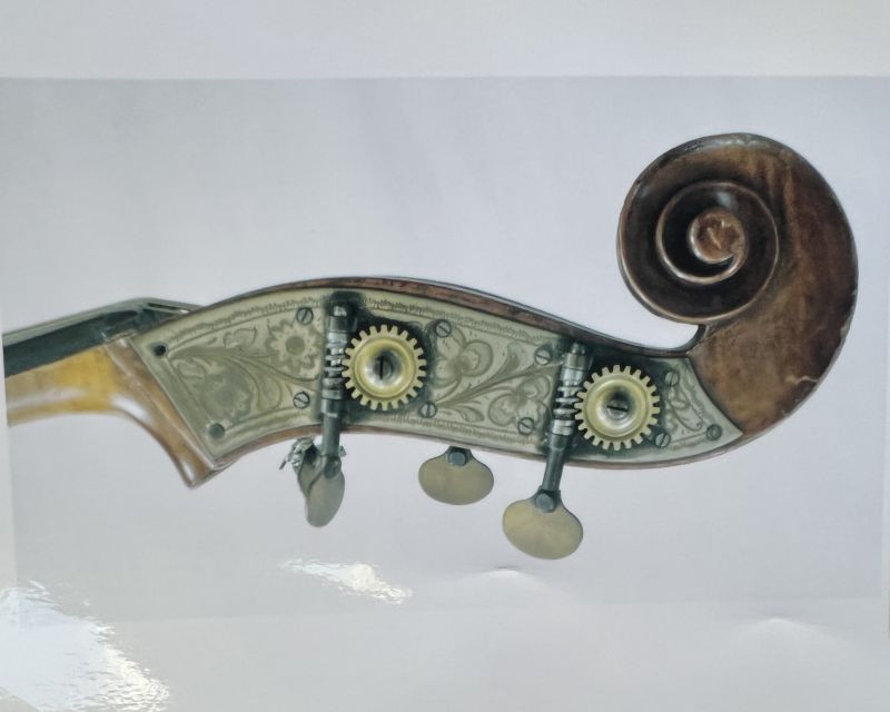 machines adorn a well-crafted scroll. Dark brown spirit varnish is generously