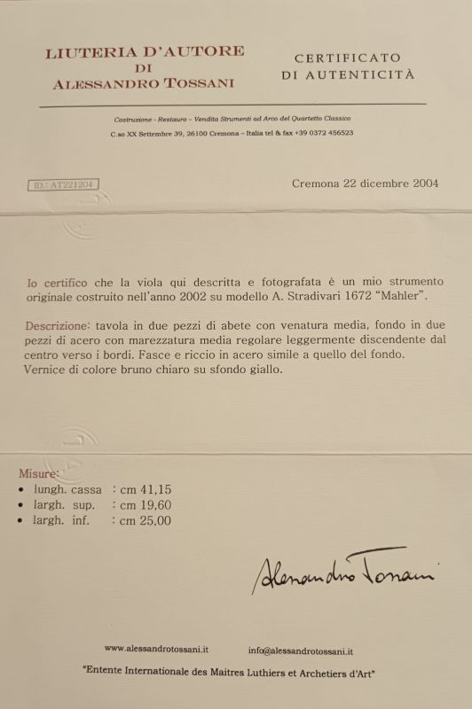 Viola made by Alessandro Tossani in Cremona (Italy)