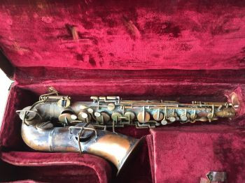 This Buescher Alto saxophone was a gift and has sentimental value. At present it is unplayable, but I was going to have it restored. It is 98 years old. Please contact me if it appears anywhere.