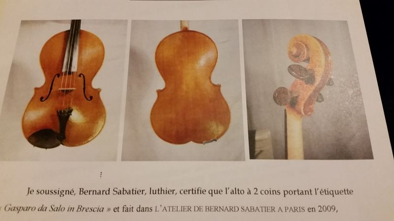 Alto 2 coins portant l'étiquette "Gasparo da Salomon in Brescia" et fait dans L'ATELIER DE BERNARD SABATIER en 2009. Longueur de la caisse : 40 cm.