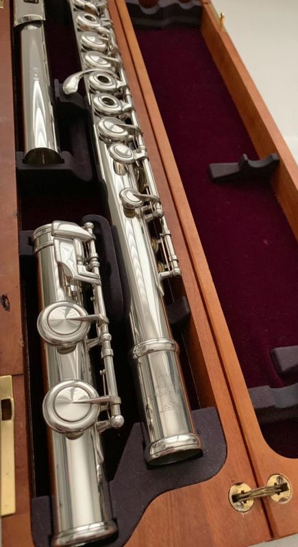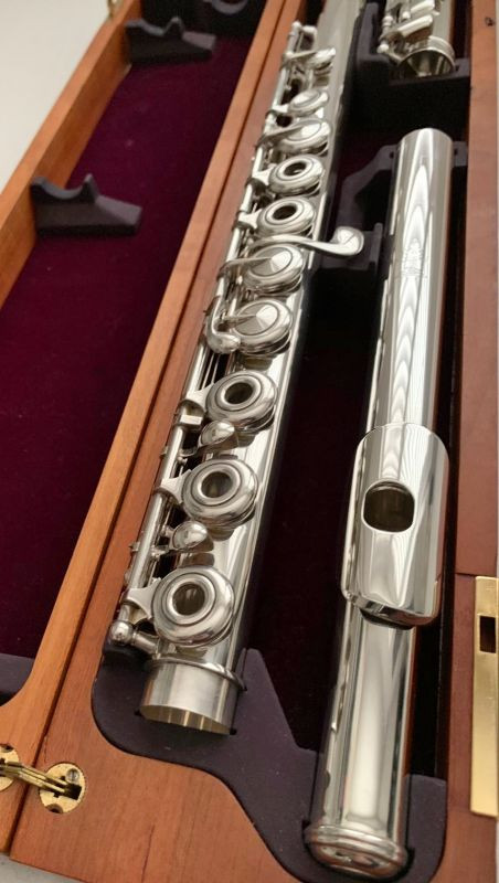 Beautifully restored Powell 2100 flute (#211340) with Straubinger pads and in the Powell wooden case. Inline G with C foot