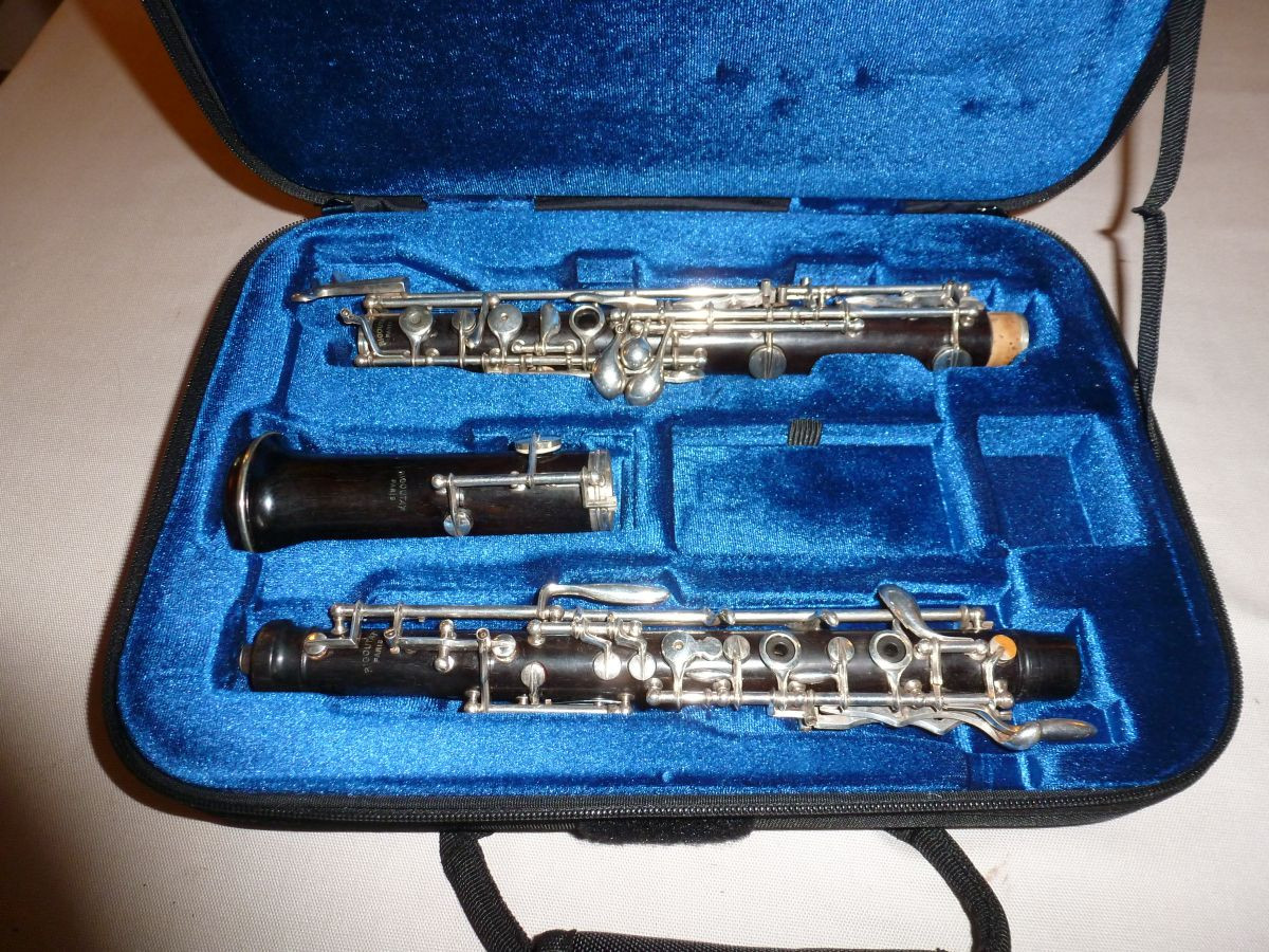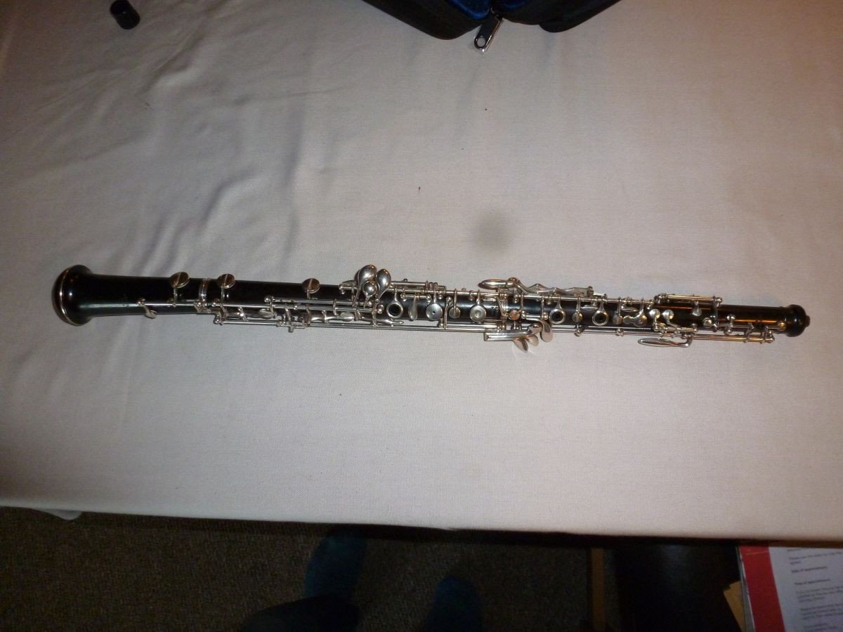 REDUCED - A Rigoutat Oboe for sale, No 110, African hardwood, thumb plate fitted (although old valuation states conservatoire), triple octave, standard key mechanism, silver-plated. Belonged to my late father, who was an accomplished oboist. Presented in a new case (see photos). Recently serviced at The Oboe Shop (Ian Crowther). In very good working condition. Any further enquiries welcome.