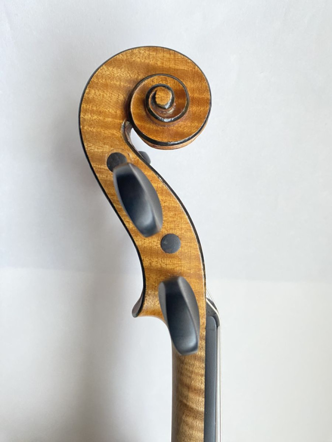 Recent luthier restoration includes new set of pegs and chin rest, oiling of neck, replacement of missing varnish on top rib and general setup including a new set of Larsen II Cannone Soloist strings.