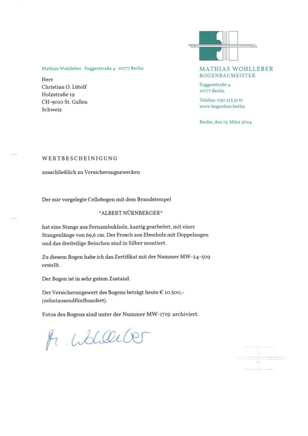 Rarität: feinster deutscher Cellobogen von Philipp Paul Nürnberger (um 1915) mit Echtheitszertifikat