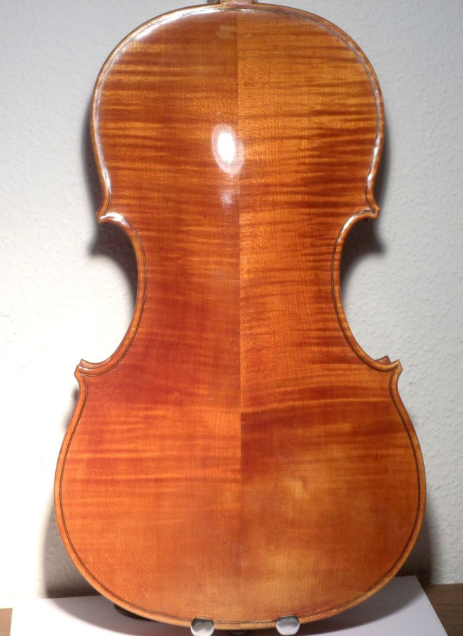 This superb italian viola is in mint condition and made of an excellent choice of tonal wood and lacquered with a beautiful oil varnish.The sound is absolutely incredible…huge, deep, warm, sonorous and powerful it makes this viola an absolute soloist instrument of the highest order and at the same its easy to play and shows why italian instruments remain the most sought after in the world.The italian origin has been confirmed by world renowned expert Eric Blot.