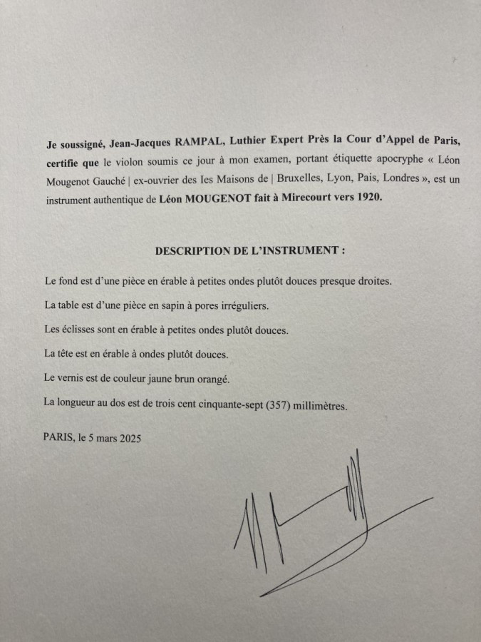 Certificate d'authenticité by
