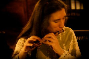 About 25cm/10" long, spotted dark brown on light (bamboo) brown (via a decorative burning technique), bound in dark brown nylon. 45-degree angled head. It was in a red-rose-ribbon-with-green-backing sleeve, inside a red and grey backpack with brown straps (also went missing). Finger and breath holes are black, made also by burning. It was the first bamboo piccolo I ever successfully built, I've had it 15 years, wrote a lot of music on it, and it's just _gone_.