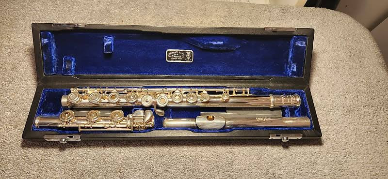 Solid sterling silver. Open hole. French style keys. Offset g. C sharp trill. Low b foot. 14k gold riser. S/N 6525.