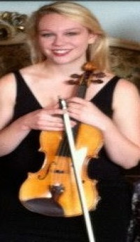 Full size light tan colored violin, bearing label Benjamin Ruth, Boston, 2011, no. 236. Black Lang case also contains a bow.