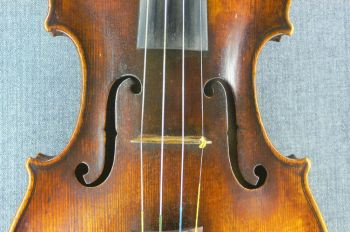 When it was stolen the violin had rosewood pegs and tail piece. It was with a bow stamped “E Sartory” and both were in a rectangular case with a dark brown cover that has missing zip tags. The violin was due for attention by experts although it was basically in very good condition.