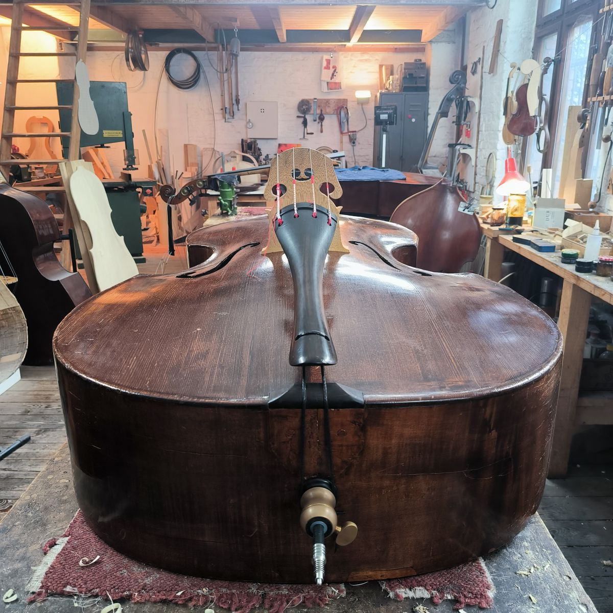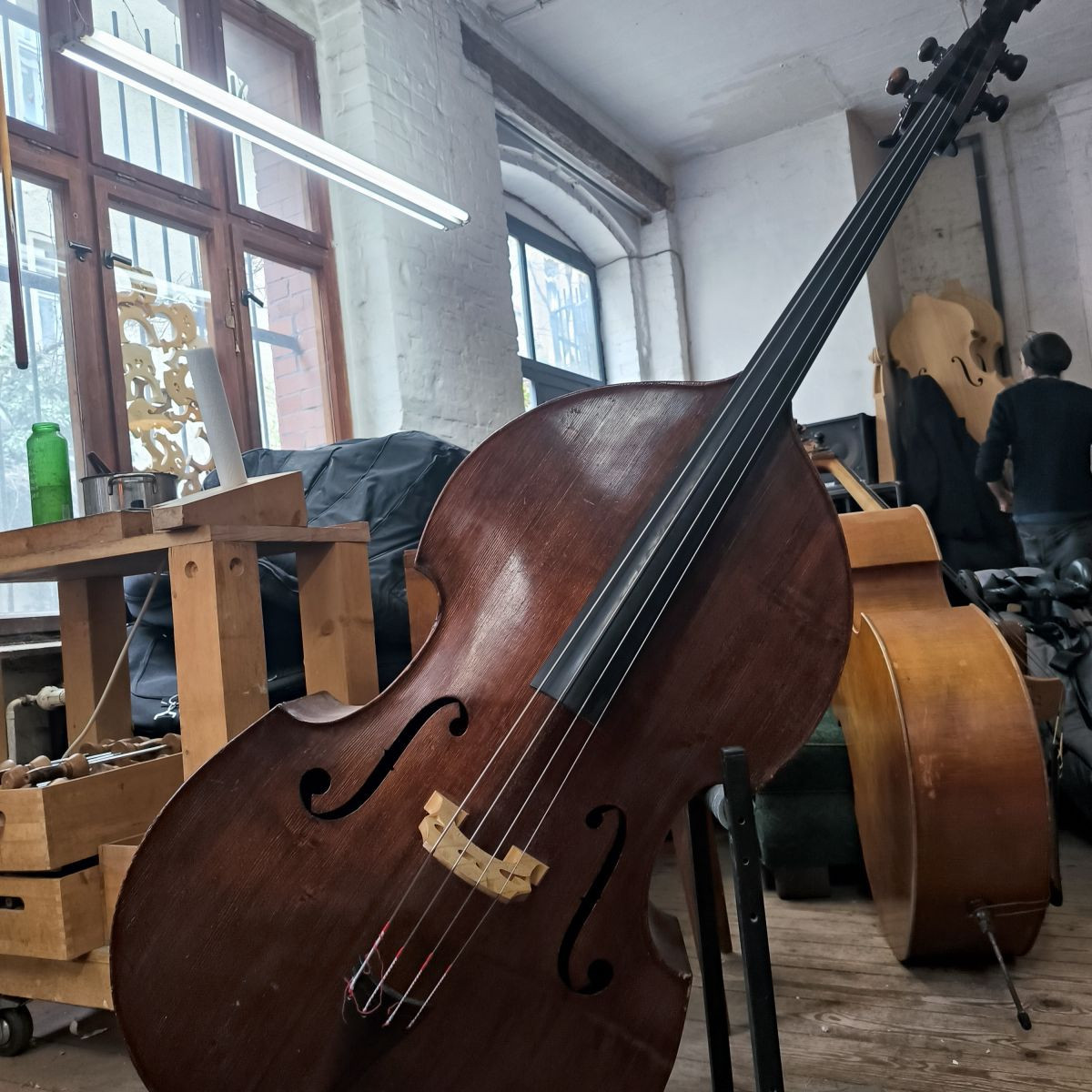 Beautiful original 1877 J. bina 4 String bass in viennese style with label. Big sound and very stable instrument. Excellent playability and in good condition. The instrument is ready to test in Berlin.