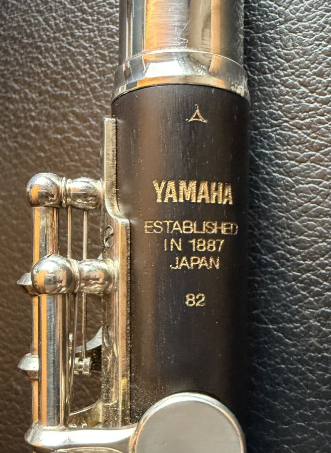 Grenadillkorpus, versilberte Neusilberklappen, Silberkopfstück, E-Mechanik,