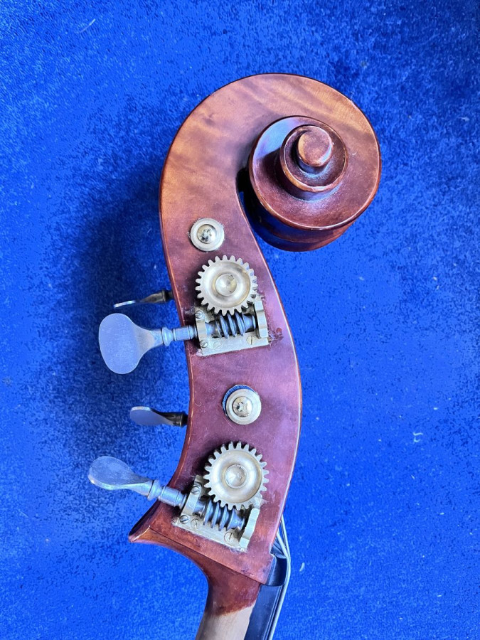 Nicely made and attractive conventional 4-string double bass. It is easy to play and makes a good sound that carries well. I have enjoyed many years of playing this instrument, which I bought new in 2006 from Malcom Healey in Surrey for £3,000, in my local Symphony orchestra. I have now bought myself a 5-string and I don’t have the space to keep both.