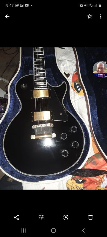 MKH les paul custom. Rebound fingerboard to have nibs (haven't finished filling chips where original binding was removed) swapped hardware and pickups to gold (originally black) truss rod cover reads "les paul custom" instead of "mkh les paul custom"