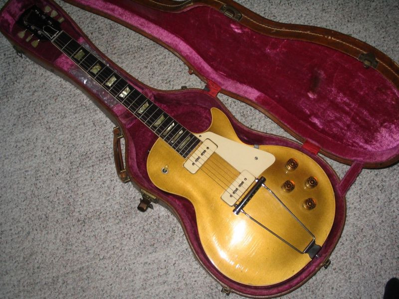 1952 Gibson Les Paul. No serial number, but has “H261” stamped on the top of the head , It is a gold top. Has the original case.