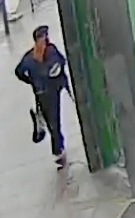 Thief was white male. Dark beard. Distinctive, very large square brown thick framed glasses.