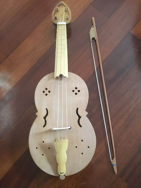 Newly made vielle and bow by Scott Wallace stolen in a train in Vienna. The instrument was in a bright blue case with colourful owl stickers.