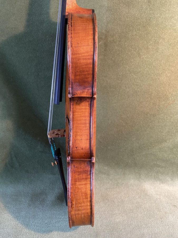 For sale a fine quality full-size English violin made by Charles Harris, senior circa 1780.Branded Harris below the button and signed three times internally by Charles Harris to the lower ribs, lower back and the upper part of the table.This fine violin is based on a Nicolo Amati full-size pattern with a back length of 35.1 cms.The measurements of this violin are,back length 35.1 cms,neck length 130 mm and the stop length is 195 mm.Constructed with a fine grain two piece front and a prominently flamed two piece back.This violin is in excellent playing condition producing a deep mellow tone with good volume which is even on all strings,a fine sounding instrument.Restored by John Topham.