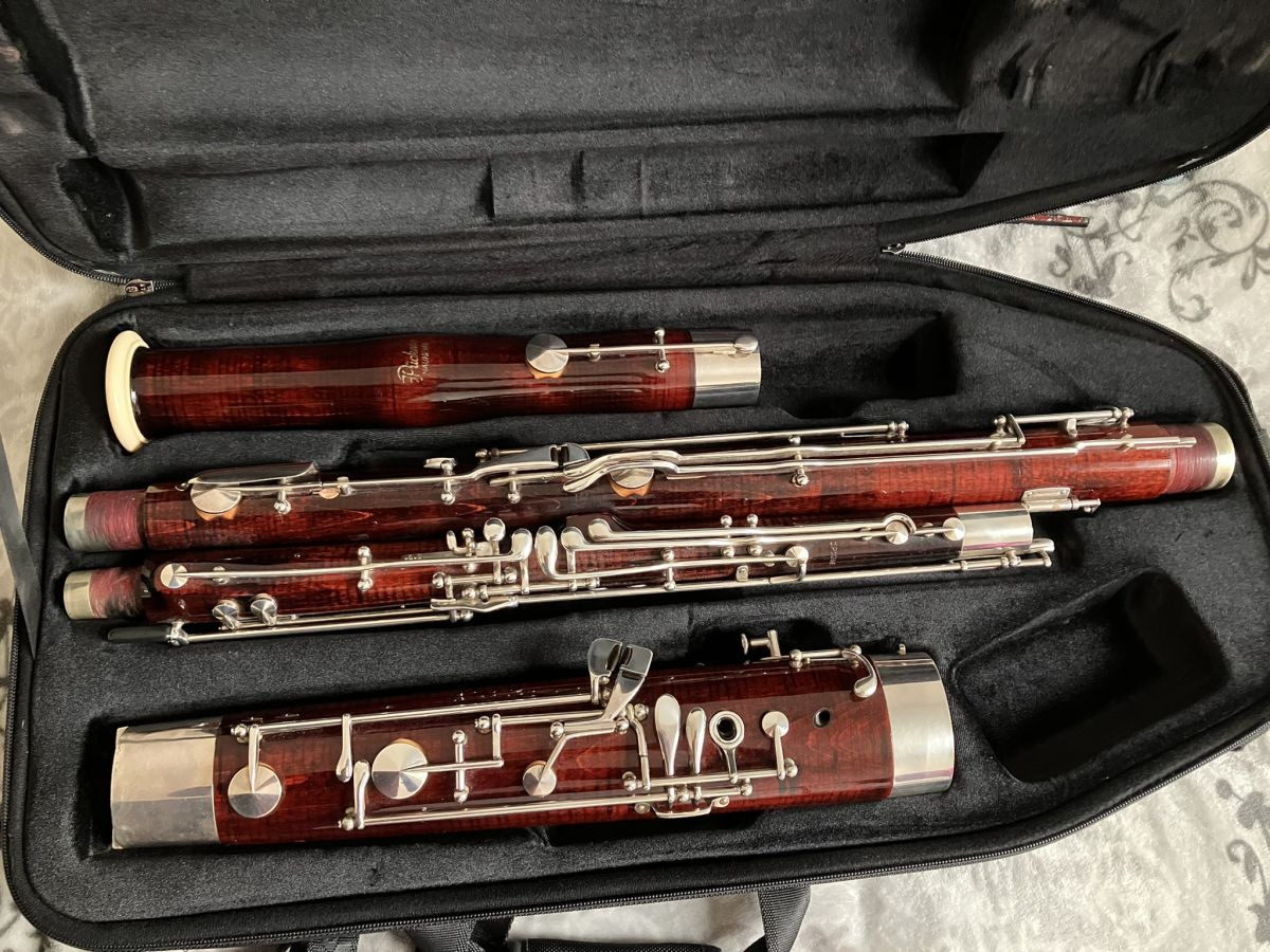 I would like to offer you my great Puchner 23 which I own since 2010. Instrument is in great condition, without any issues and great high register. Silver-plated mechanism, automatic G ring key, high-D key, high-E key, E-F# trill, Eb key on wing joint, whisper-key mechanism operated on wing joint and self-acting from low-E key, whisper-key lock for left thumb, link between A and whisper key, Ab-Bb trill key on boot joint for right thumb. Instrument also has sterling silver tubes extending into the bore and lock between boot and wing joint. Two Puchner bocal included. You can check the sound on the recording. Bassoon available for trial in Brussels. Shipping not possible.