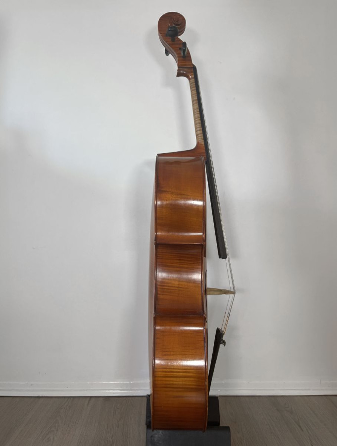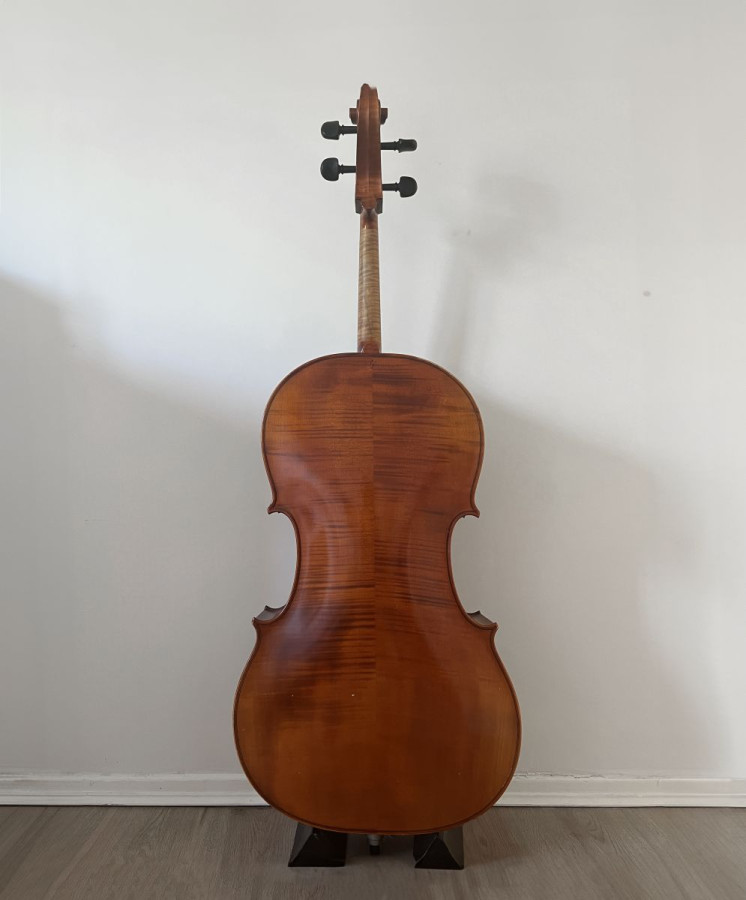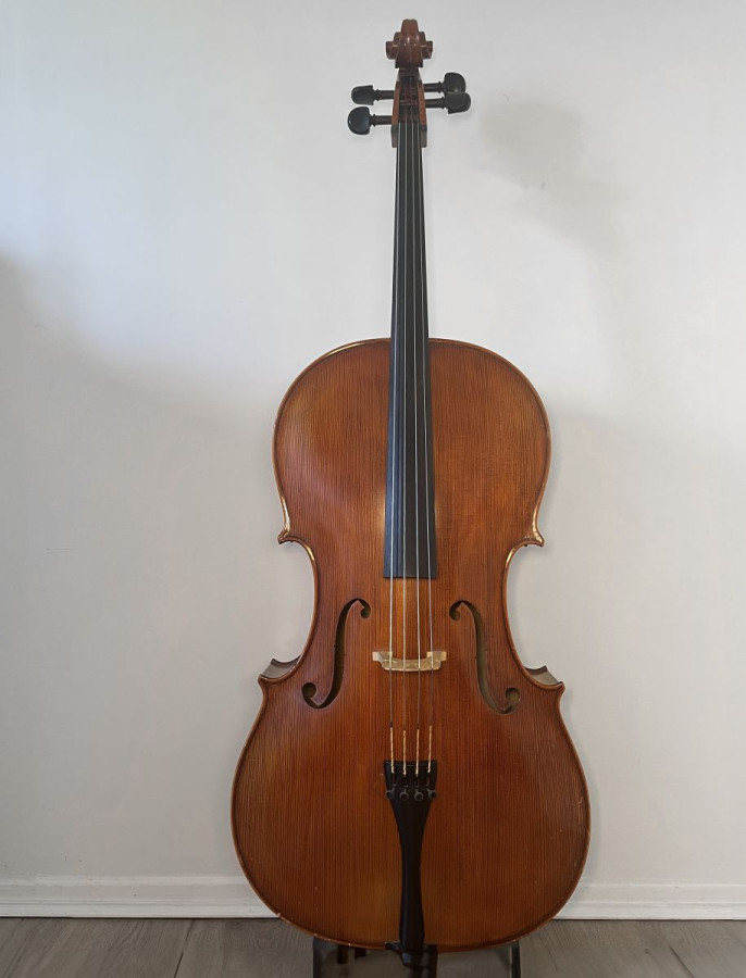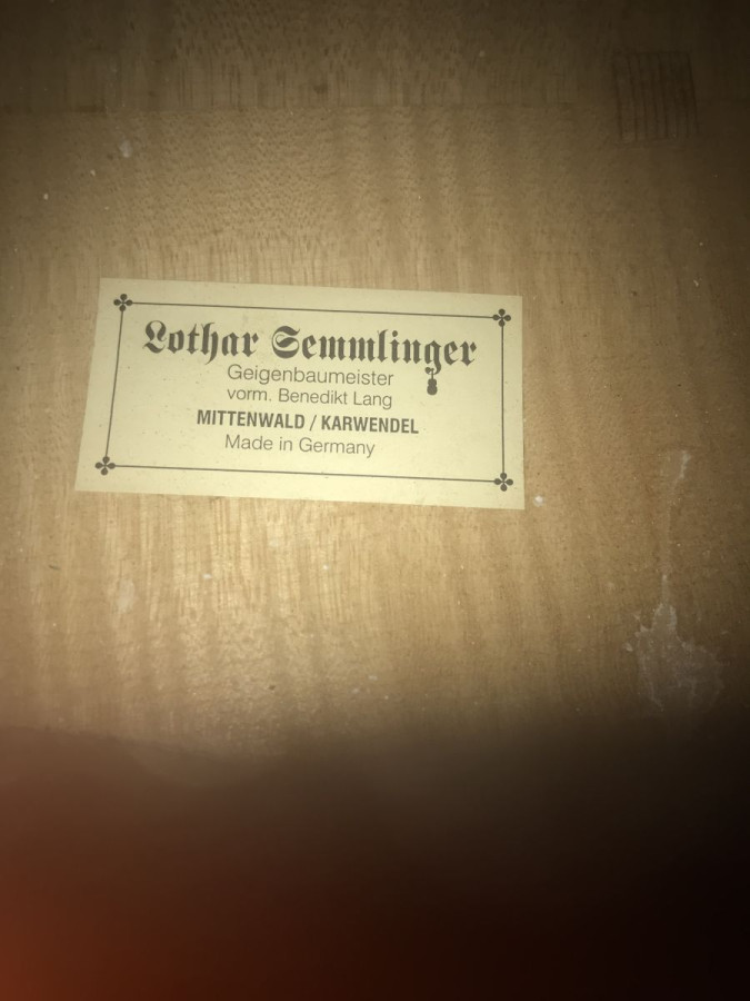 A rich sounding cello, made in the workshop of renowned luthier Lothar Semmlinger. The front is of fine grain and of a deep varnish and the back, ribs and neck are of a medium/deep flame. The overall condition of the cello is excellent. It has never been repaired and only has a few minor blemishes. This is a finely made instrument that would suit a student of any level or serve as an excellent back-up instrument for a professional musician. Includes a decent bow from Finkel Atelier and a hard case.