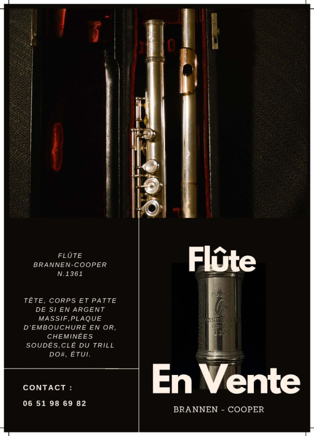 TÊTE, CORPS ET PATTE DE SI EN ARGENT MASSIF, PLAQUE D'EMBOUCHURE EN OR, CHEMINÉES SOUDES, CLE DU TRILL DO#, ÉTUI.