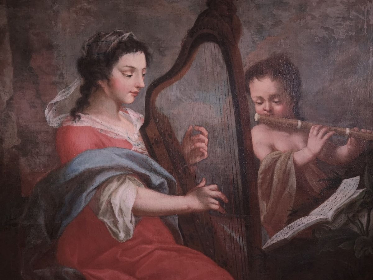 Gemälde um 1700 "Konzert für Flöte und Harfe"