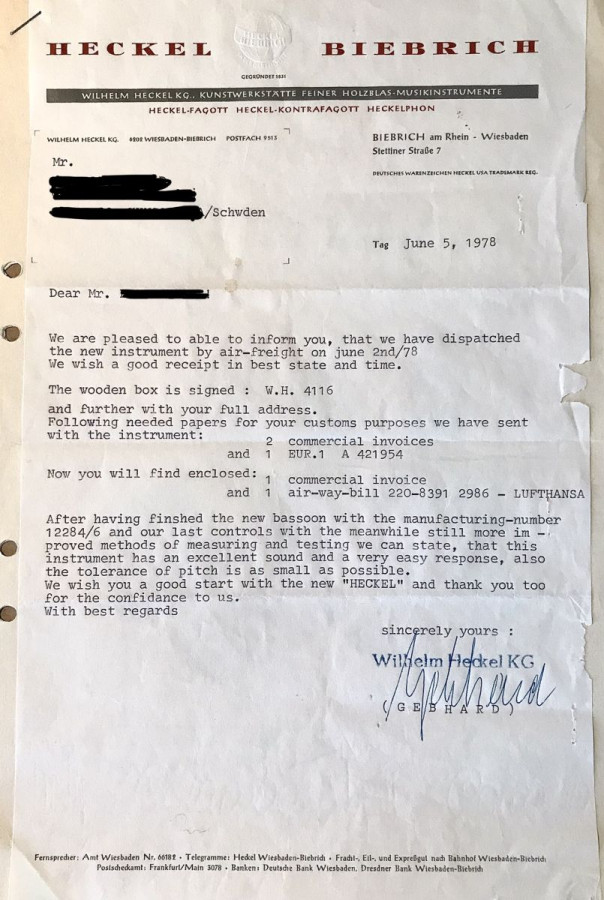 Comes with a gold brass Heckel bocal CV-1 and Tutti-Fagotti case.