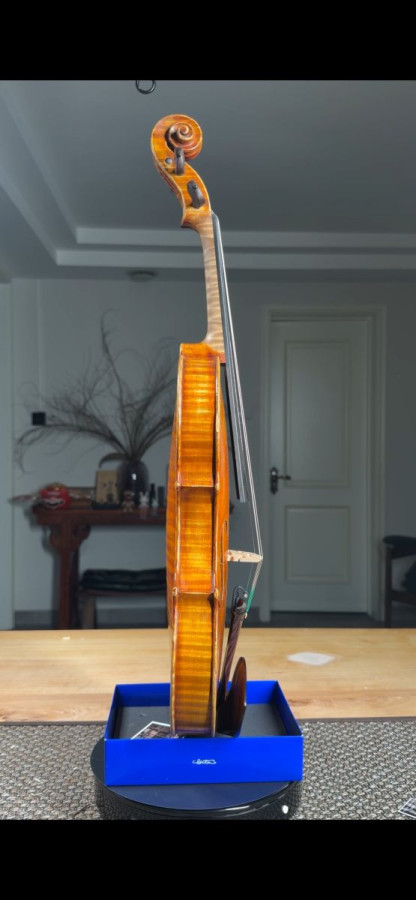 Featuring a Guarneri Del Gesu Model, stunning one-piece bosnian maple back, original varnish and handwritten label.