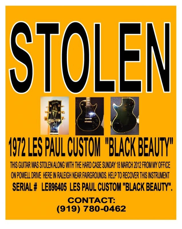 Stolen 1972 Gibson Les Paul "Black Beauty"