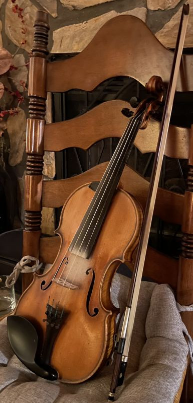 A French violin labelled Antoine Curtil 1904 Light Golden Brown varnish. A 2 piece highly figured back. A small chip out of the top of the scroll (2mm)had been repaired with a light brown filling agent. Neck elevation had been recently reset in Paris