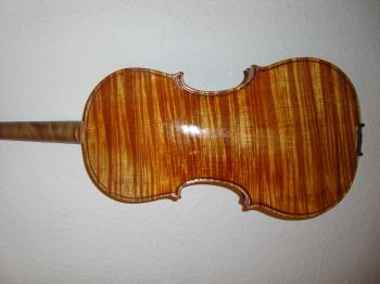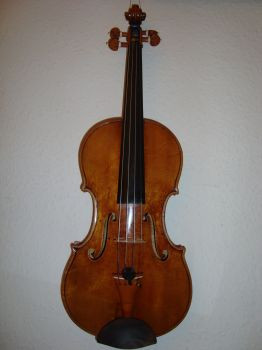 a beatiful old looking Violin, the bridge has little wood-pads under the legs.