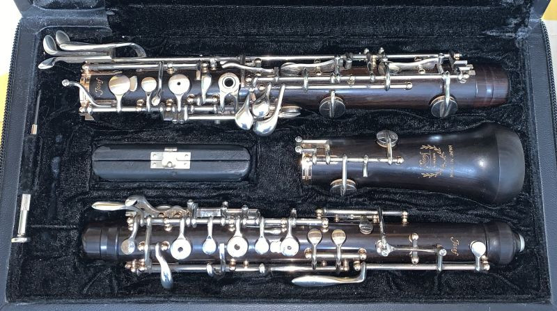 In the same bag with other oboe knifes, reed material, micrometer Kunibert and sheet music such as L. Berio Sequenza VII or Mozart oboe Concerto (Bärenreiter)