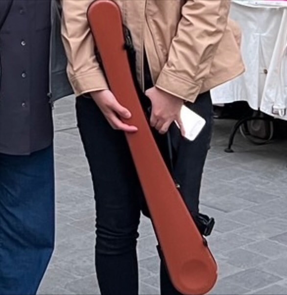 The bow case is made by Bogaro&Clemente and is dark orange in color.