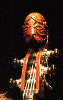 Lors du vol, équipée d'un carquois à archet et d'un micro "The Realist" (une cellule sous un des pieds du chevalet et câble électrique accroché au cordier).