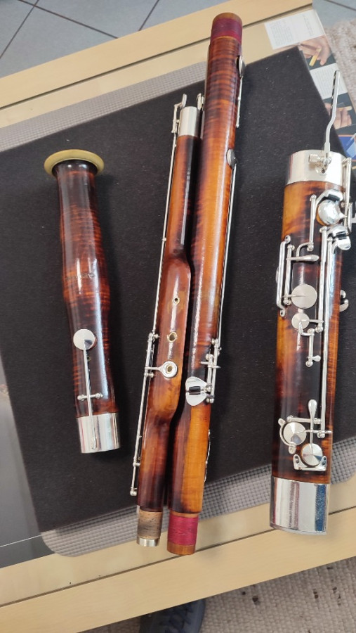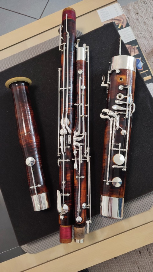 Ich verkaufe ein wunderschönes Heckel-Fagott nach vollständiger Generalüberholung – neuer Lack, neue Hülsen und ein zweiter Gummieinsatz im Stiefel (angefertigt von Herrn Walter Rieger). Neues Zubehör – Balancer und Flügel-Bassrohr-Verbindung, Original von Heckel. Neuer Koffer von der Firma Tutti Fagotti.